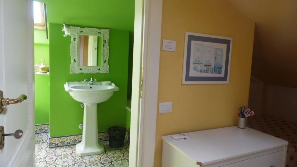 In mansarda camera doppia con bagno.
