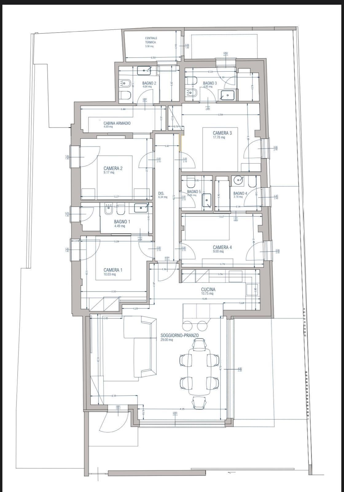 L’immobile, con facciata dotata di cappotto termico, si sviluppa su una superficie commerciale di circa 150 mq ed è caratterizzato da ambienti ampi e luminosi. L’ingresso conduce a una grande zona giorno con angolo cottura, elegante e funzionale, perfetta per la vita quotidiana e per accogliere ospiti. La zona notte ospita quattro camere, tutte con bagno privato, oltre a un bagno di cortesia e a una comoda zona lavanderia.