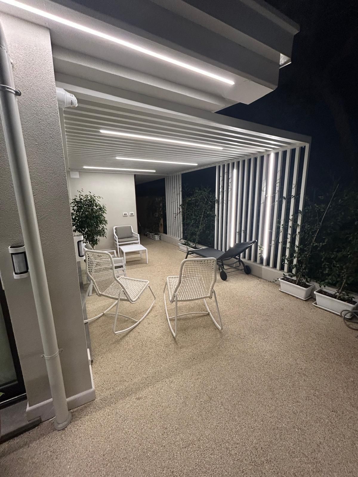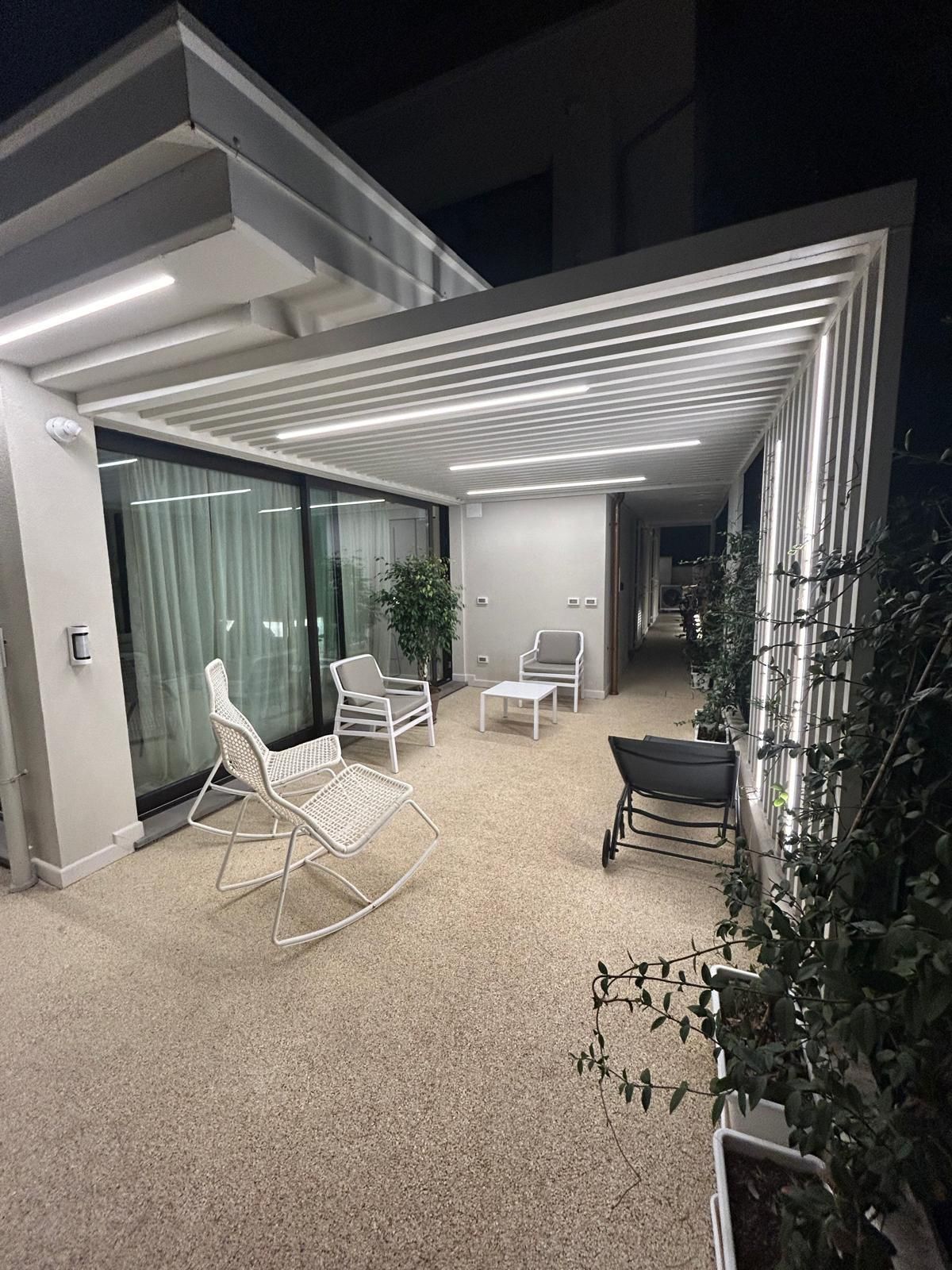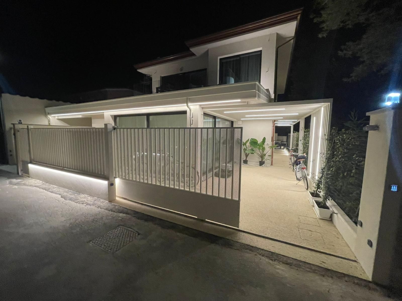 Gli spazi esterni rappresentano un vero valore aggiunto: una zona sotto pergola, ideale per momenti di relax all’aperto, è utilizzabile anche come posto auto, grazie al cancello d’ingresso ampio e scorrevole.